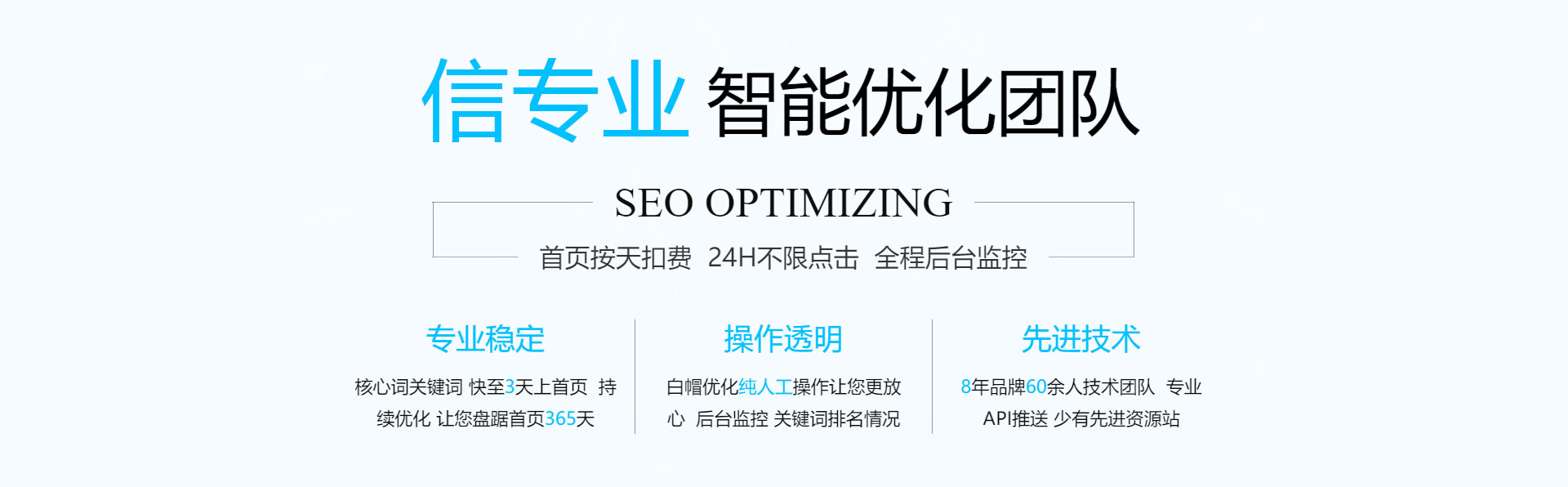 關鍵詞優(yōu)化,無效果退款!專業(yè)技術管控賬戶,減少無效點擊,全方位網絡推廣,讓您的信息遍布互聯網。